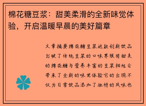 棉花糖豆浆:甜美柔滑的全新味觉体验,开启温暖早晨的美好篇章