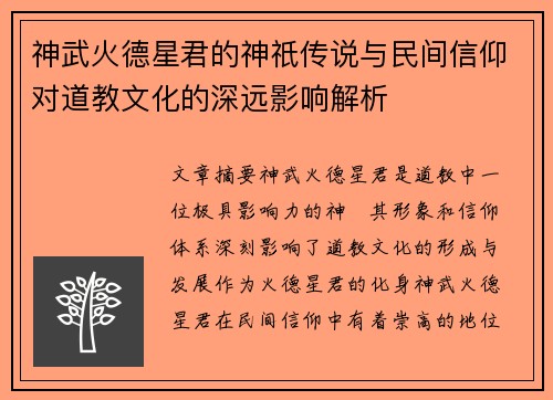神武火德星君的神祇传说与民间信仰对道教文化的深远影响解析