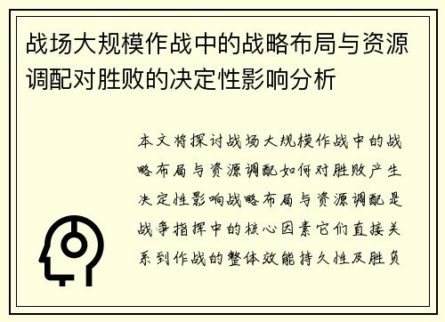 战场大规模作战中的战略布局与资源调配对胜败的决定性影响分析