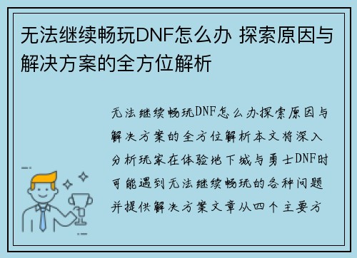 无法继续畅玩DNF怎么办 探索原因与解决方案的全方位解析